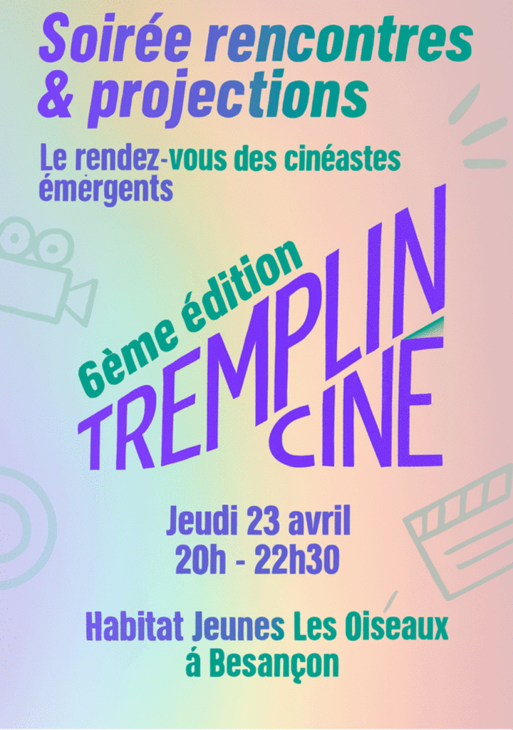 La 6ᵉ édition de Tremplin Ciné aura lieu le 7 mai 2026 au théâtre L’Espace – Les 2 Scènes à Besançon. Créé par l’association D’Ici et d’Ailleurs, le festival valorise la jeune création cinématographique amateur et émergeante de la région Bourgogne-Franche-Comté.